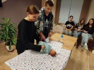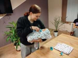 Педагог-психолог Галина Викторовна и воспитатель Лариса Васильевна провели для них мероприятие «Ответственное родительство», где девчонки и мальчишки учились пеленать, кормить и ухаживать за «малышом» – куклой, конечно, но с серьезным подходом к делу!👍